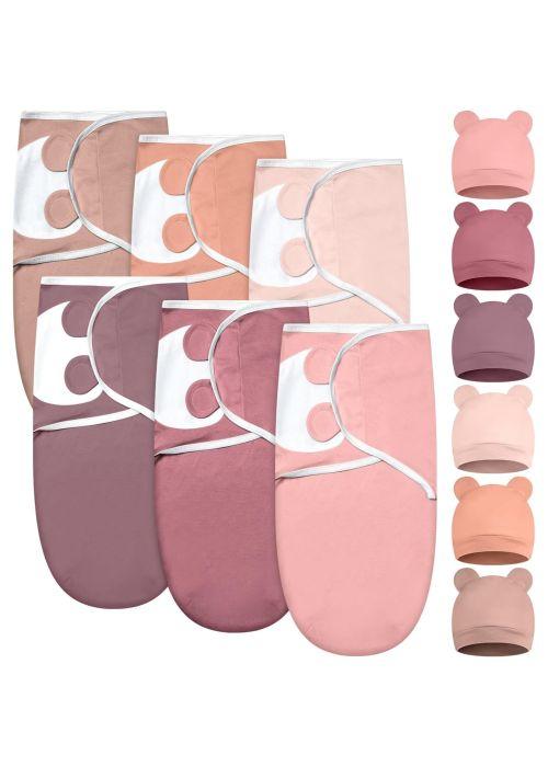 Ramede 6 Pack Baby Swaddle Blanket with Hats Sleep Swaddle for 0-3 Months Newborn Sacks Soft Cotton Wearable for Boy Girl(Simple,Solid Pink) - Ages 0 to 3 months