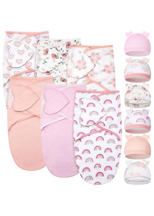 Ramede 6 Pack Baby Swaddle Blanket with Hats Sleep Swaddle for 0-3 Months Newborn Sacks Soft Cotton Wearable for Boy Girl(Love,Pink) - Ages 0 to 3 months