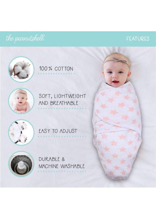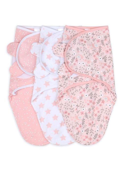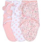 The Peanutshell Baby Swaddle Blankets Set of 3 - Baby Girl Sleep Sack for Newborn, Soft & Breathable Cotton - Pink Floral 3 - 6 months
