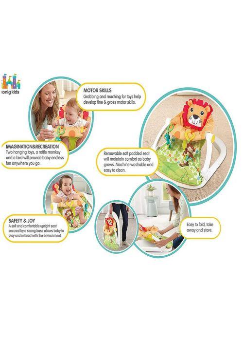 Crafted from plush and vibrant materials, this chair ensures your baby's utmost comfort and visual delight. The sturdy frame guarantees durability, and the included 3-point safety harness keeps your baby secure. With soothing music, vibration control, and an engaging toy bar, it offers a world of fun and relaxation for your little one, making it their favorite happy place.