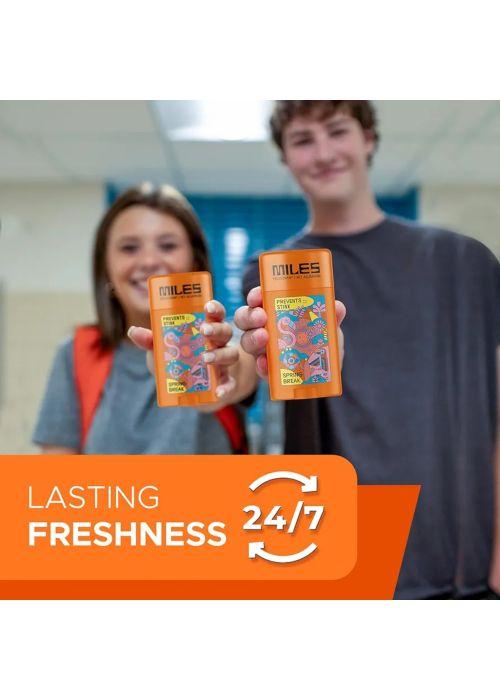 - Keep Kids Fresh - Miles teen deodorant offers 24-hour effective odor protection for active kids. The fresh and clean fragrance will keep your child smelling great, all day long.