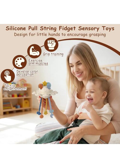 TYRY.HU Silicone Baby Sensory Montessori Toys,Silicone Pull String Fidget Toys for Babies 18 Months+, Travel Toy for Plane, Car, and Stroller, Early Educational Fine Motor Skills Toy for Toddlers