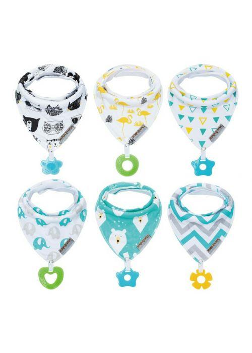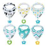 Baby Bandana Drool Bibs 6-Pack and Teething Toys 6-Pack Made with 100% Organic Cotton, Super Absorbent and Soft Unisex (Vuminbox) (6-Pack Unisex)
