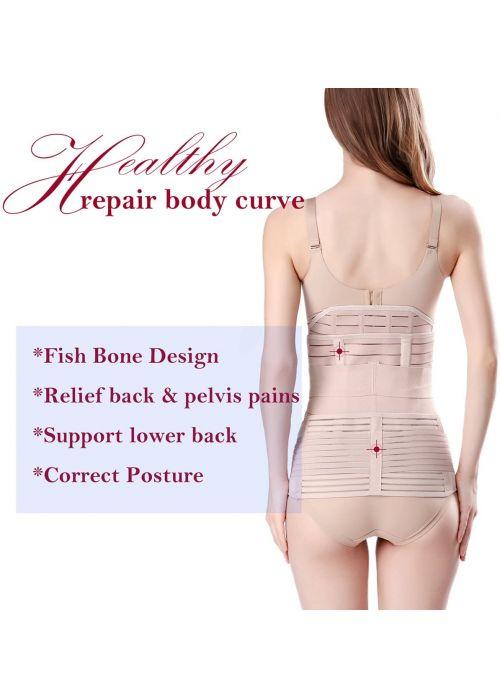 3 in 1 Postpartum Support - Recovery Belly/Waist/Pelvis Belt Shapewear Slimming Girdle, Beige, One Size